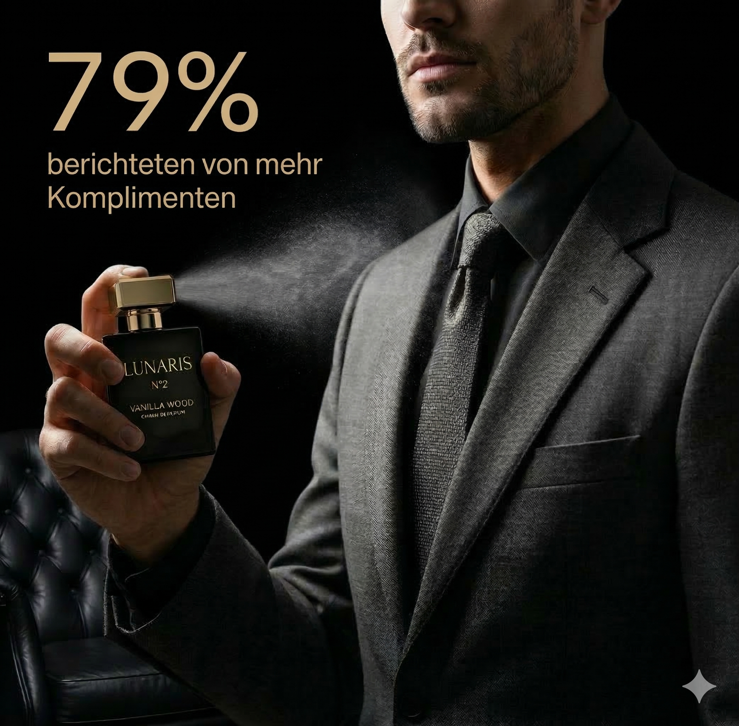 Es ist mehr als nur ein Duft. Unsere Pheromon-Formel hüllt dich in eine unsichtbare Aura, die Anziehungskraft und Stärke ausstrahlt. Werde zum Mittelpunkt, ohne ein Wort zu sagen.